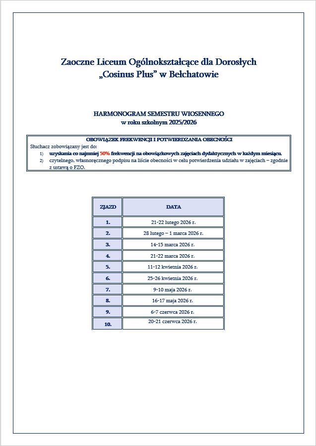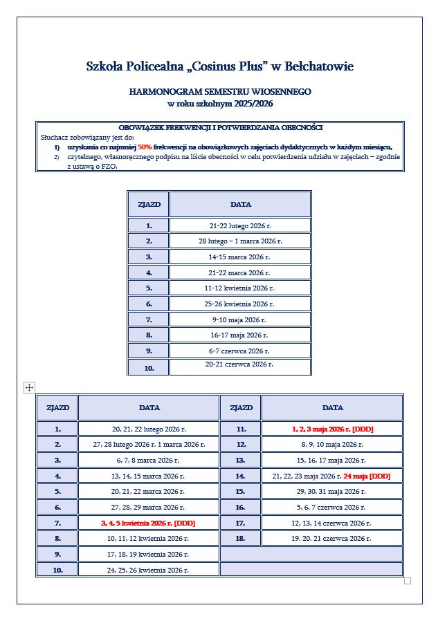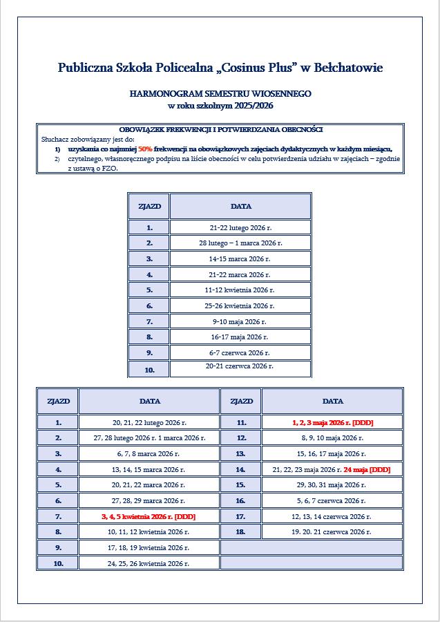 Nowy harmonogram zjazdów na semestr wiosenny jest już dostępny! Wejdź w szczegóły i sprawdź terminy.