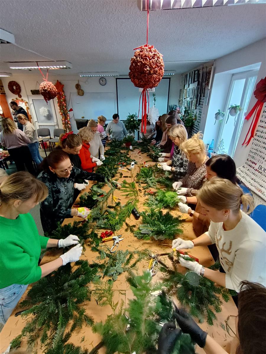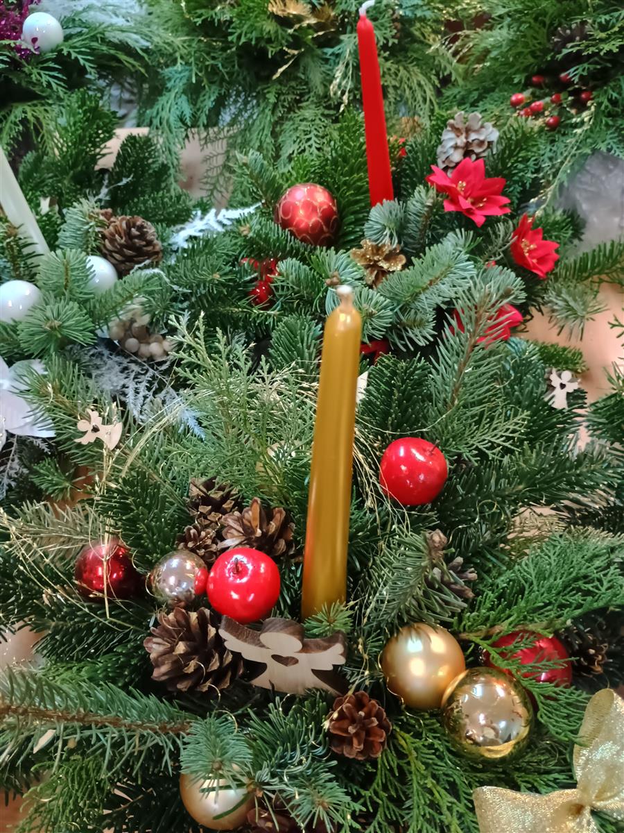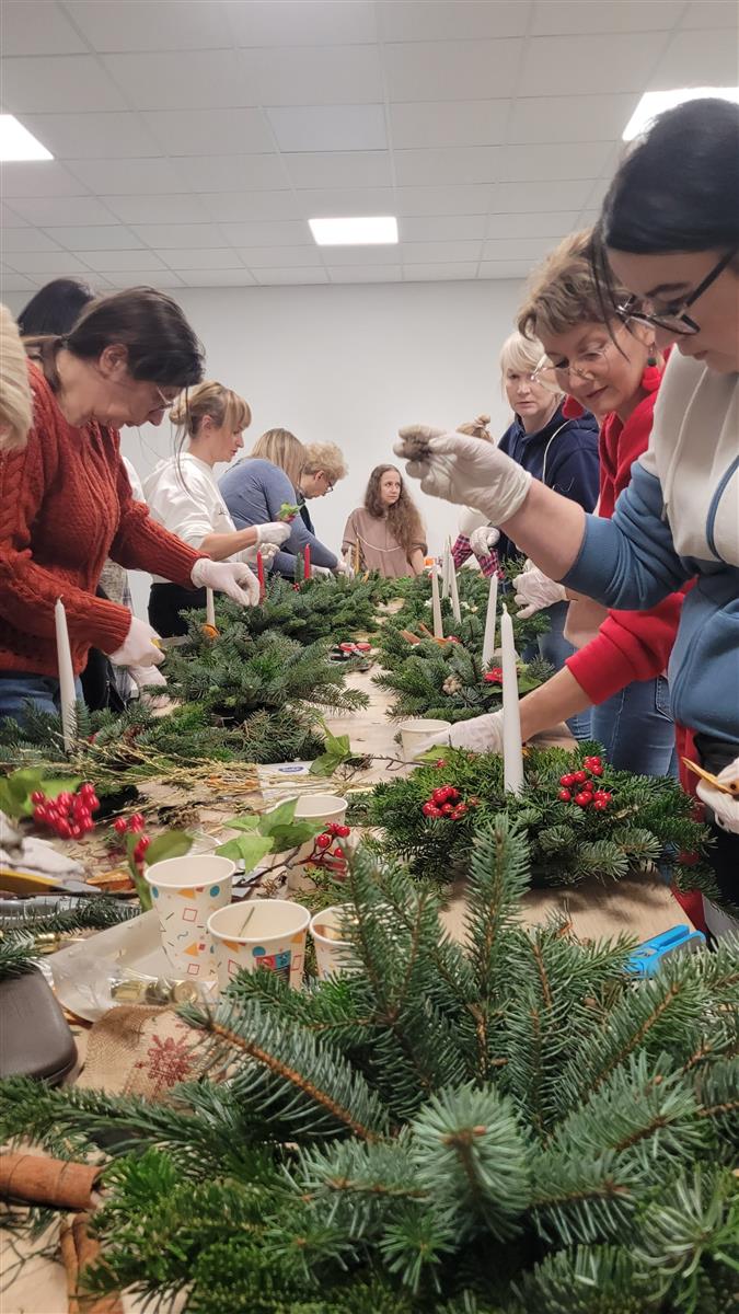 Uczestnicy z ogromnym zaangażowaniem i kreatywnością tworzyli własne świąteczne stroiki. Efekty ich pracy można podziwiać na zdjęciach – powstały piękne, klimatyczne kompozycje, idealne na wigilijny stół. Towarzyszyła nam ciepła, radosna atmosfera oraz prawdziwie świąteczny nastrój.