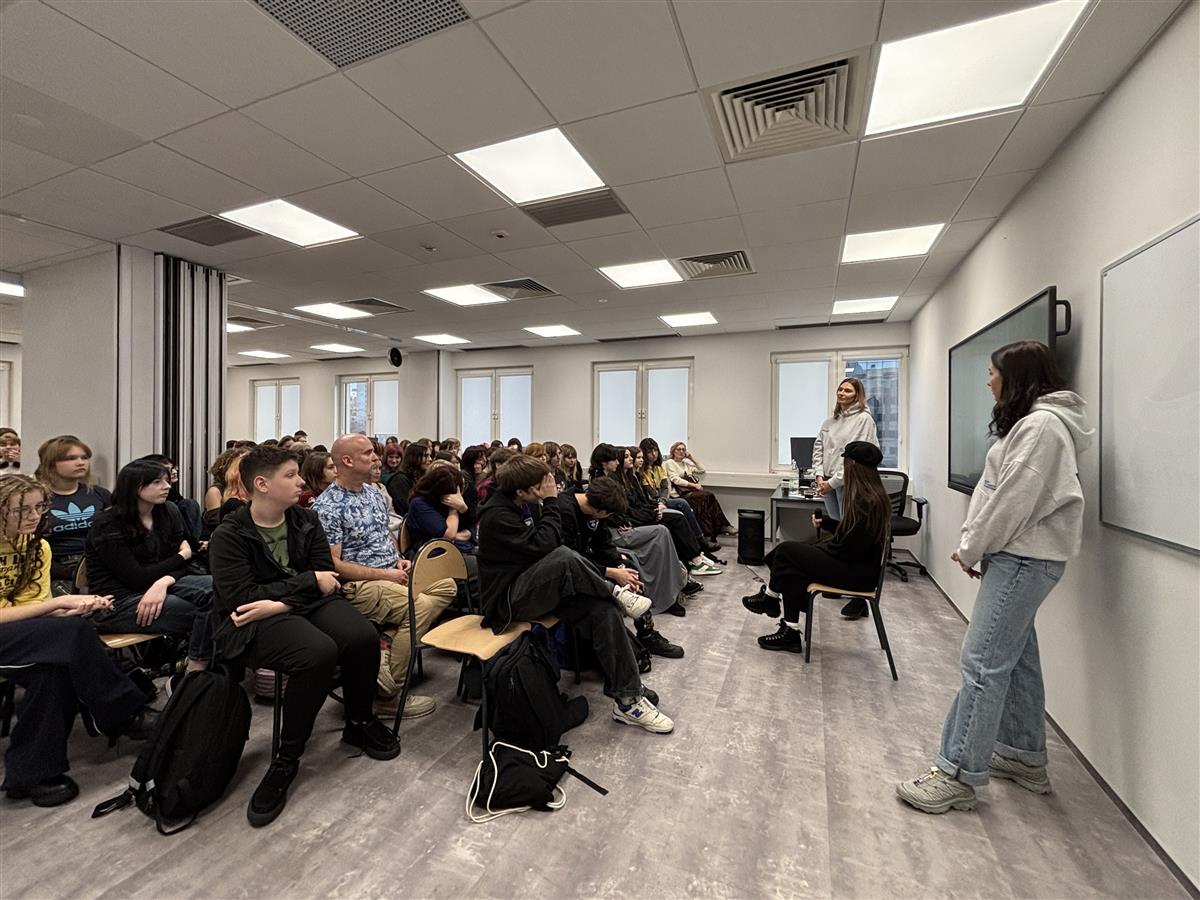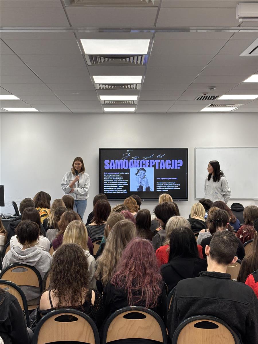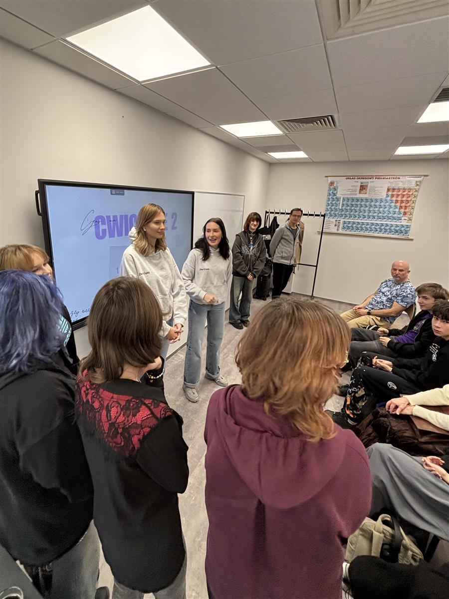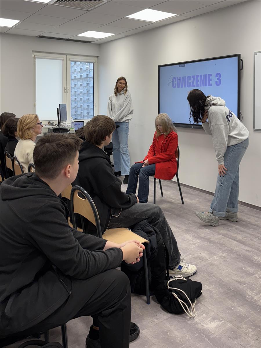 Spotkanie prowadzone przez Ewę Niespodzianą i Olimpię Kosakowską było okazją do rozmowy o presji rówieśniczej, trudnych emocjach i wpływie mediów społecznościowych na poczucie własnej wartości. Uczniowie brali udział w ćwiczeniach, analizowali przykłady i poznawali narzędzia, które pomagają radzić sobie z krytyką, wykluczeniem czy złośliwymi komentarzami.